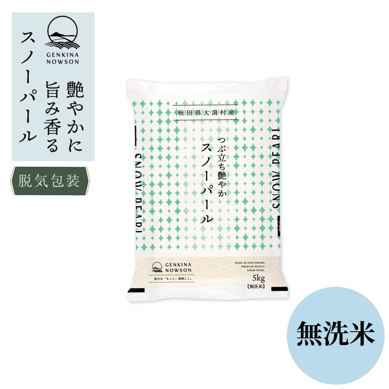 令和7年産 秋田県産 スノーパール 無洗米 5kg(脱気包装有り)